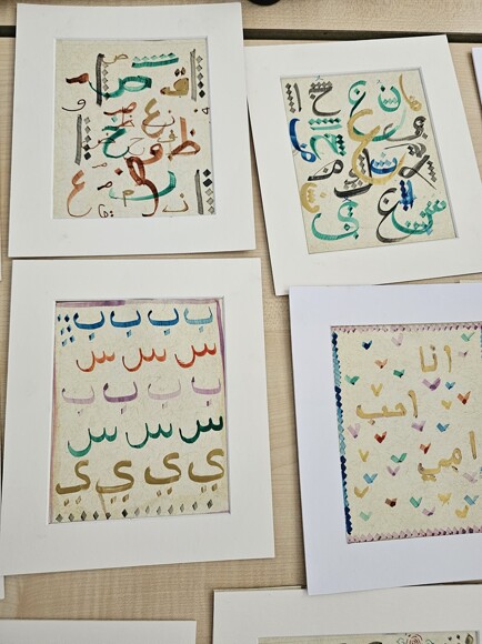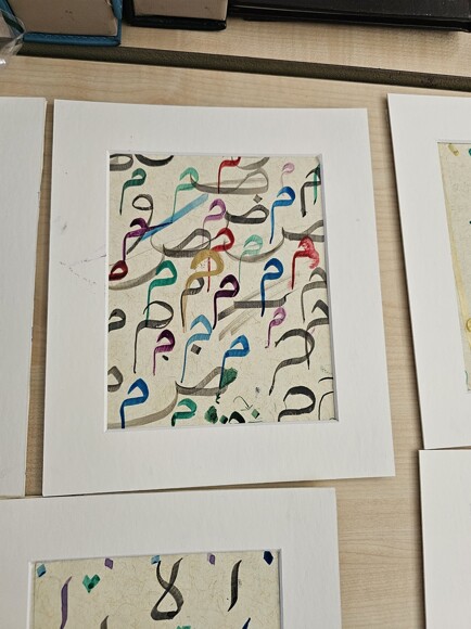 The final part of the session allowed students to express their creativity by producing an art piece using coloured inks, which proved especially popular. Some boys asked to practice further before starting their final pieces and, due to time constraints, even requested to take their work home. Teachers supervising the sessions noted how excited students were to handle the traditional wooden qalam and write “like in the olden days.”